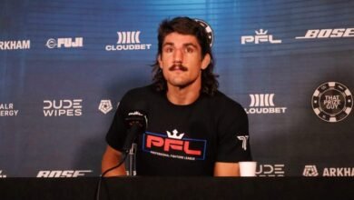 The third round picked up where the second had left off. Playing out on the feet, with Grant having more in the striking department. When Blackshear committed to a takedown near the halfway mark, he came close, but Grant showed he was no slouch in the takedown defense department, sprawled, and stuffed it. From there, Grant let his hands go, firing lefts and rights as Blackshear covered up alongside the cage. Grant was showing a trail of blood from one shin, either from checking a kick or landing one, but his mobility didn’t seem hampered.